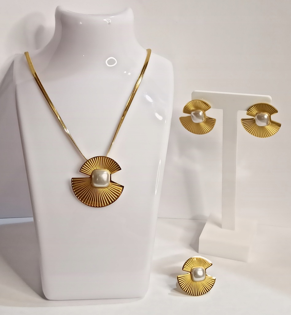 Przedmiotem aukcji jest 3-częściowy zestaw biżuterii ze stali chirurgicznej 316l ze sztuczną perłą.