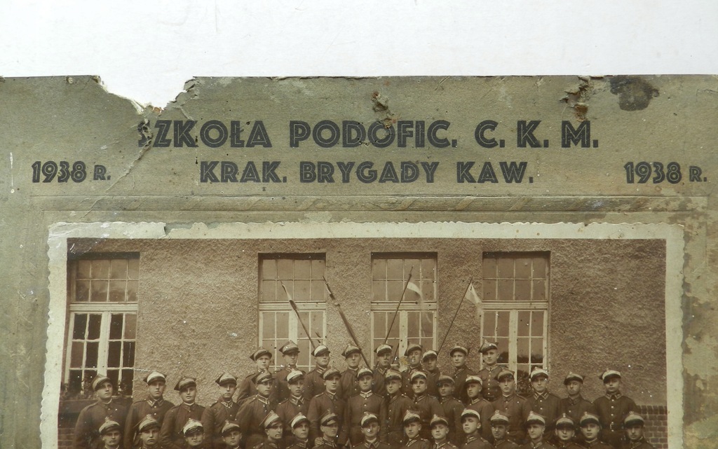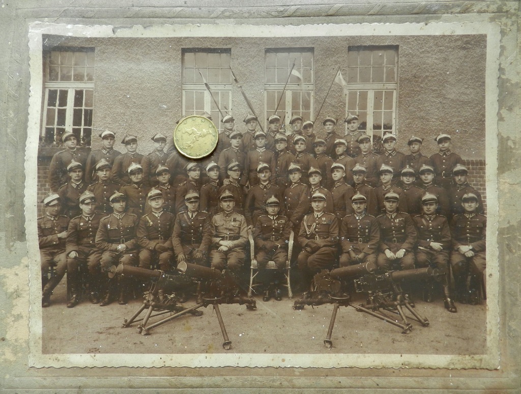 Przedmiotem licytacji jest oryginalna fotografia z 1938 roku przedstawiająca elewów Szkoły Podoficerskiej C.K.M. Krakowskiej Brygady Kawalerii wraz z kadrą dowódczą. Widoczni ułani, strzelcy konni oraz oficerowie z: 3 pułk Ułanów Śląskich w Tarnowskich Górach, 8 pułk Ułanów Księcia Józefa Poniatowskiego w Krakowie oraz 5 pułk strzelców konnych w Dębicy i Tarnowie. W środku na wiklinowym krześle siedzi dowódca 8 PU pułkownik kawalerii Kazimierz Mastalerz, na lewo od niego w jasnym mundurze siedzi dowódca 3 PU podpułkownik kawalerii Czesław Chmielewski. Zdjęcie duże, naklejone na passe partout. Wymiary przyciętej tekturki ok.:30x26 cm., wymiary fotografii ok.:23x17 cm.. Sygnowane suchą pieczęcią fotografa: "Gruszka Tarnowskie Góry Krakowska 8". Stan zachowania widoczny na zdjęciach. Polecam, bardzo ciekawa fotografia z mnóstwem detali.