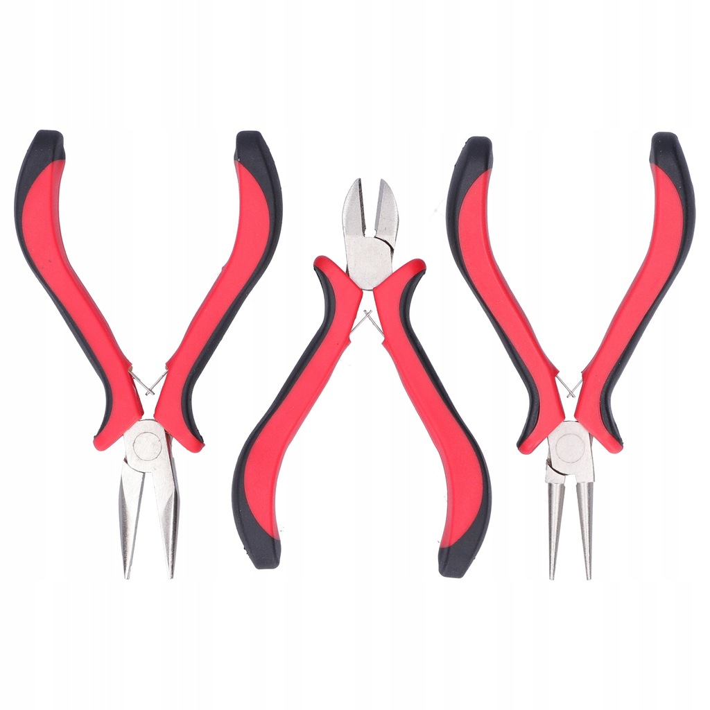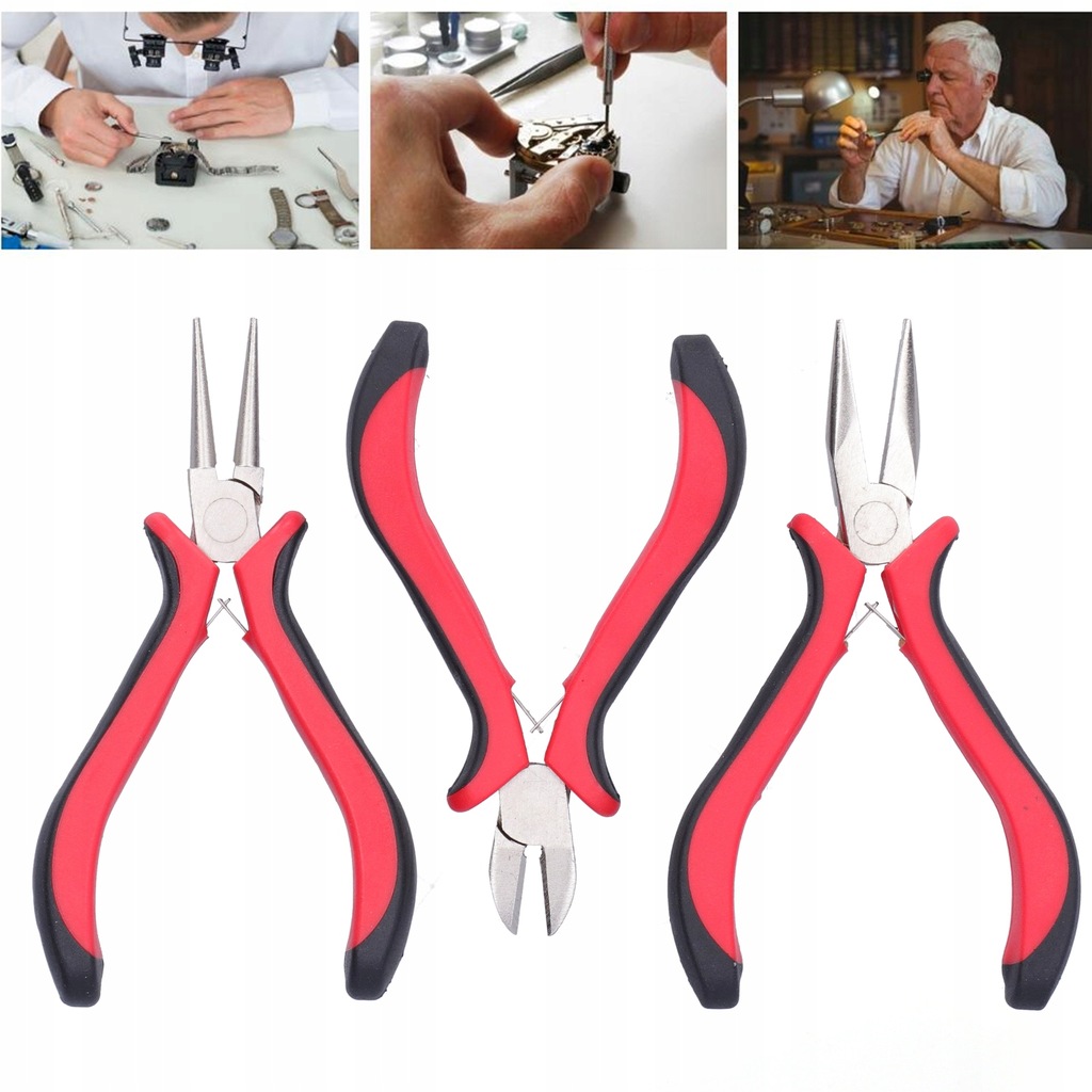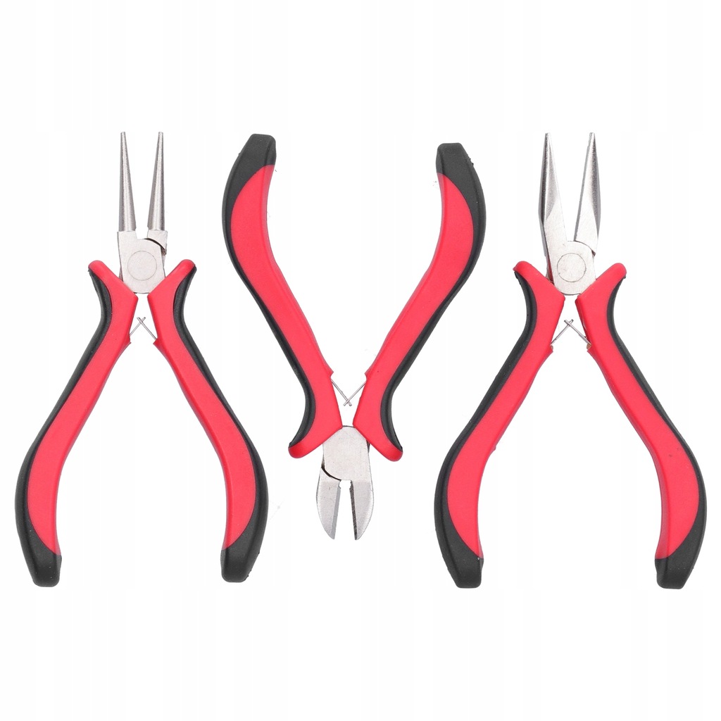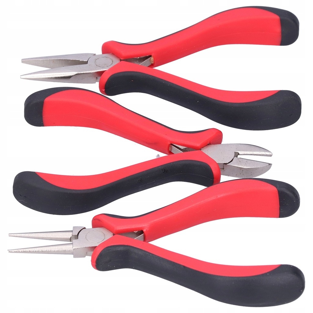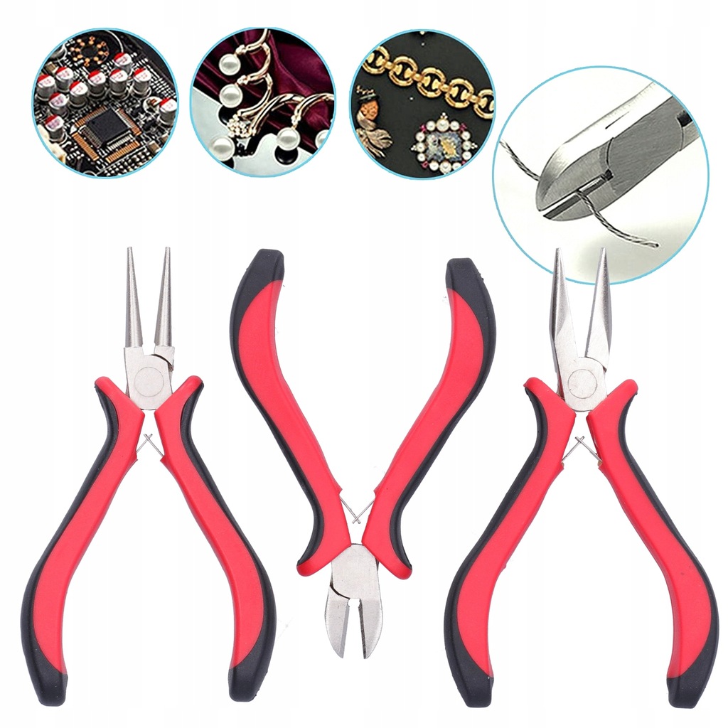 Cecha: 1. Zestaw zawiera szczypce okrągłe, szczypce półokrągłe i szczypce tnące, odpowiednie do różnych operacji profesjonalnego tworzenia biżuterii.