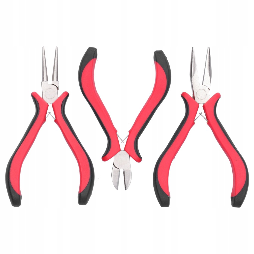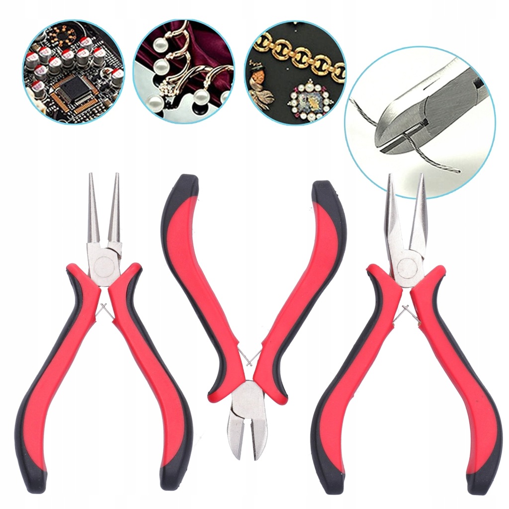 Cecha: 1. Zestaw zawiera szczypce okrągłe, szczypce półokrągłe i szczypce tnące, odpowiednie do różnych operacji profesjonalnego tworzenia biżuterii.