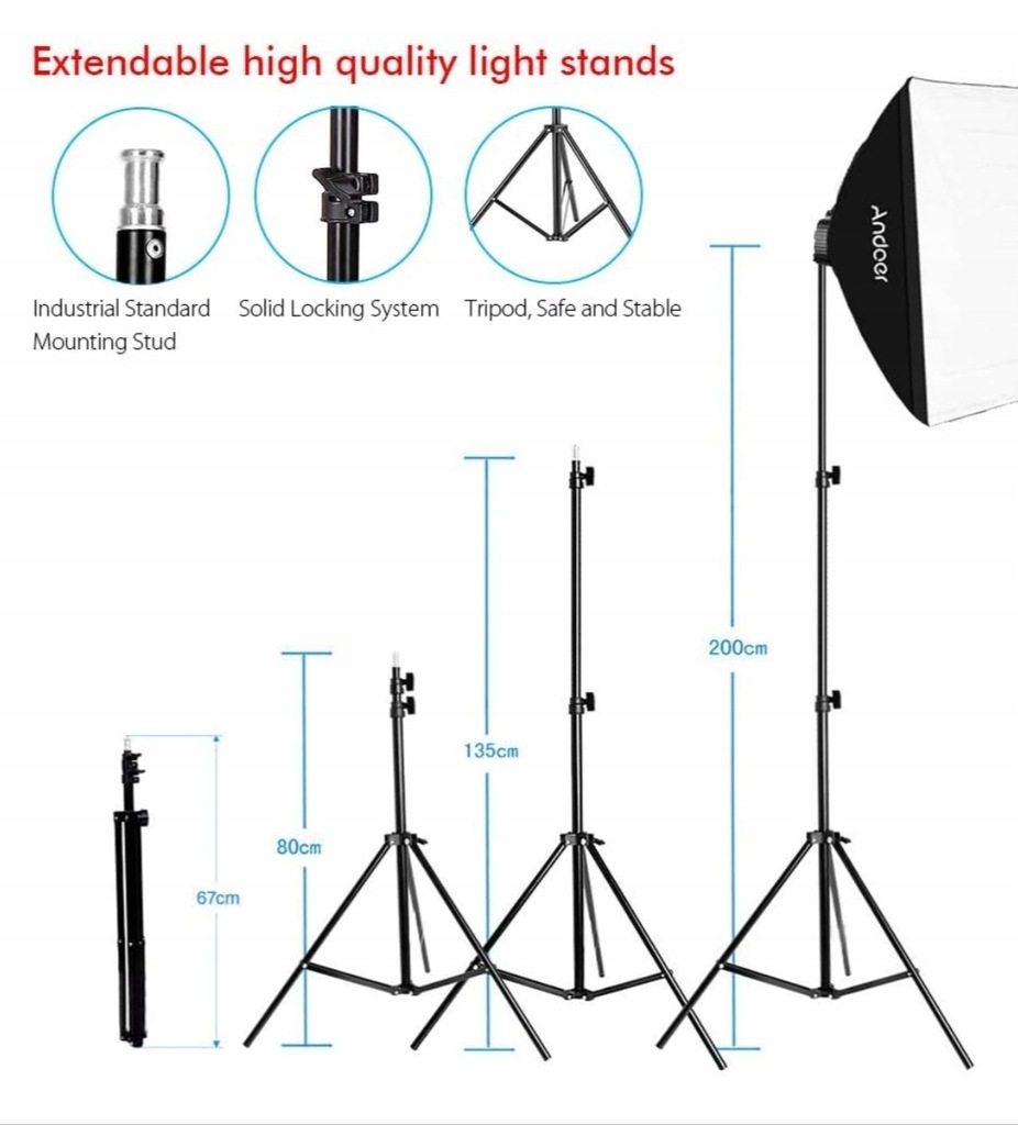 Stabilny statyw doskonale utrzymuje softbox, a dzięki jego teleskopowo regulowanej wysokości od 68 cm do 2 m można użyć lampy zarówno na potrzeby fotografii portretowej, jak i fotografii drobnych przedmiotów.