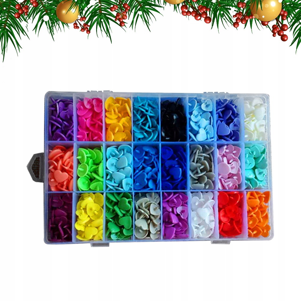 -360 sztuk plastikowych napy w losowych, jasnych i żywych kolorach.Każdy kolor napy znajduje się w przegródce w schowku.