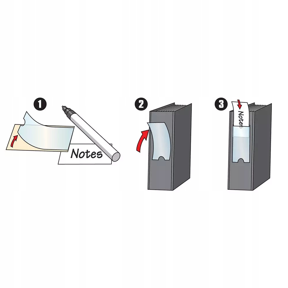 Kieszeń samoprzylepna 3L z etykietami w rozmiarze 75 x 150 mm do oznaczania segregatorów i szuflad na dokumenty.