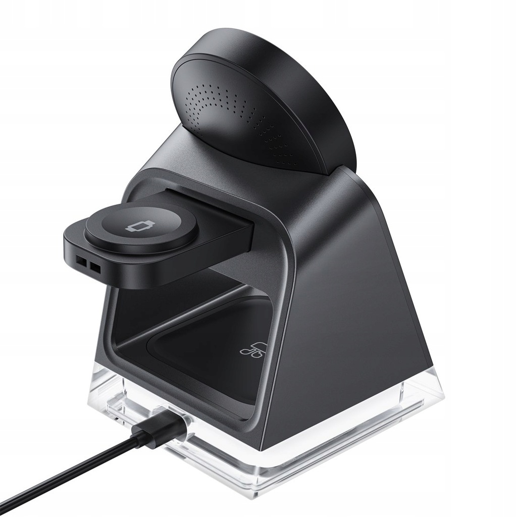 - - Pozwala na ładowanie trzech urządzeń jednocześnie. Posiada miejsce na telefon, zegarek i słuchawki,
