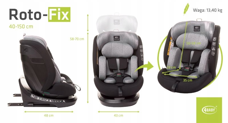 4 BABY Fotelik ROTO-FIX 40-150cm Grey I-Size