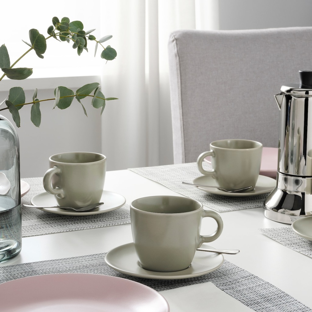 4 szt. FÄRGKLAR Filiżanka ze spodkiem - Matowy zielony 25 cl