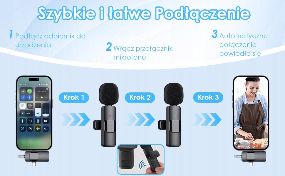 Mikrofony działają z szeroką gamą urządzeń – iPhone, iPad, Android, aparaty fotograficzne – co czyni je idealnym wyborem dla wszystkich twórców, niezależnie od używanego sprzętu. Szybka i prosta konfiguracja pozwala na błyskawiczne rozpoczęcie nagrywania w każdym miejscu.
