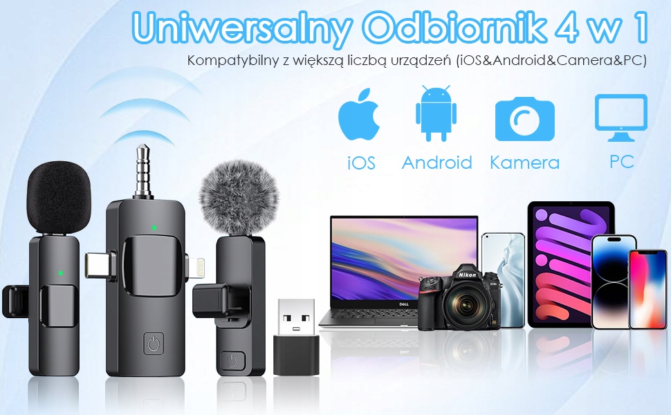 ✨ 4 w 1 Bezprzewodowe Mikrofony Lavalier to więcej niż zestaw do nagrywania – to narzędzie, które pomoże Ci podnieść jakość Twoich materiałów wideo na wyższy poziom. ✨