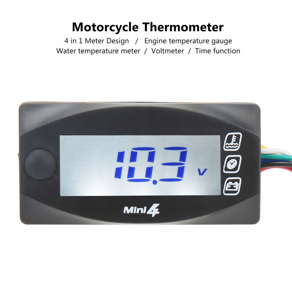 1. Wielofunkcyjny: termometr motocyklowy 4 w 1, możesz uzyskać dokładne napięcie, czas, temperaturę silnika, informacje o temperaturze wody.