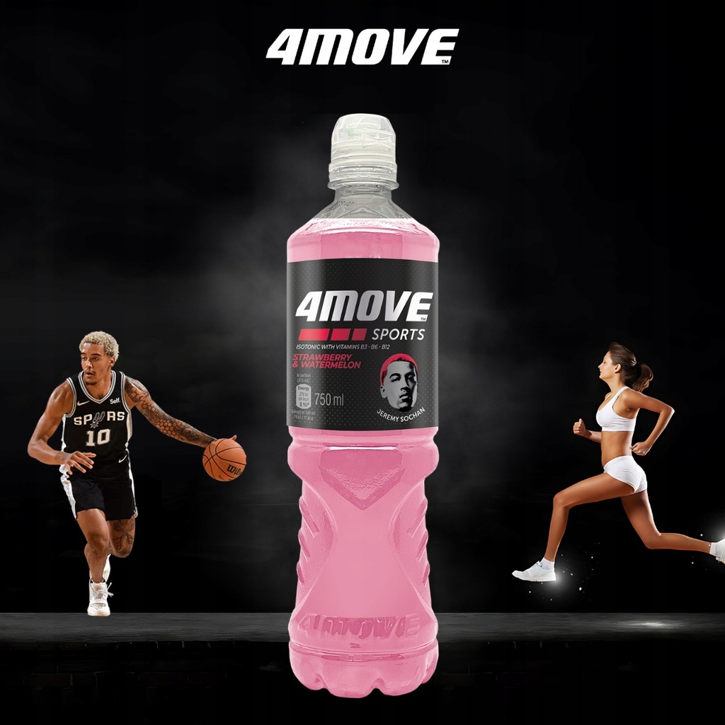 ➡️4Move Napój izotoniczny niegazowany o smaku Arbuz-Truskawka 750 ml x 12 sztuk