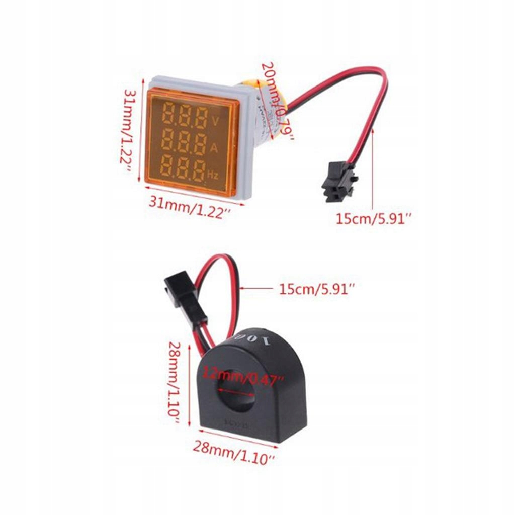 Square LED Digital Voltmeter Ammeter Hertz Meter Signal Lights Voltage Current Frequency Combo Meter Indicator Tester.
