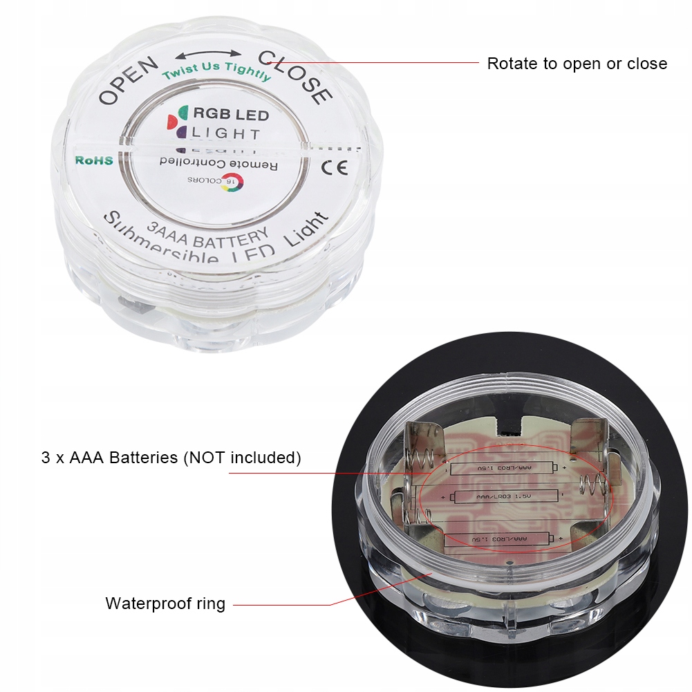 To podwodne światło można umieścić w wazonie, akwarium, stawie i małym basenie w celu dekoracji.