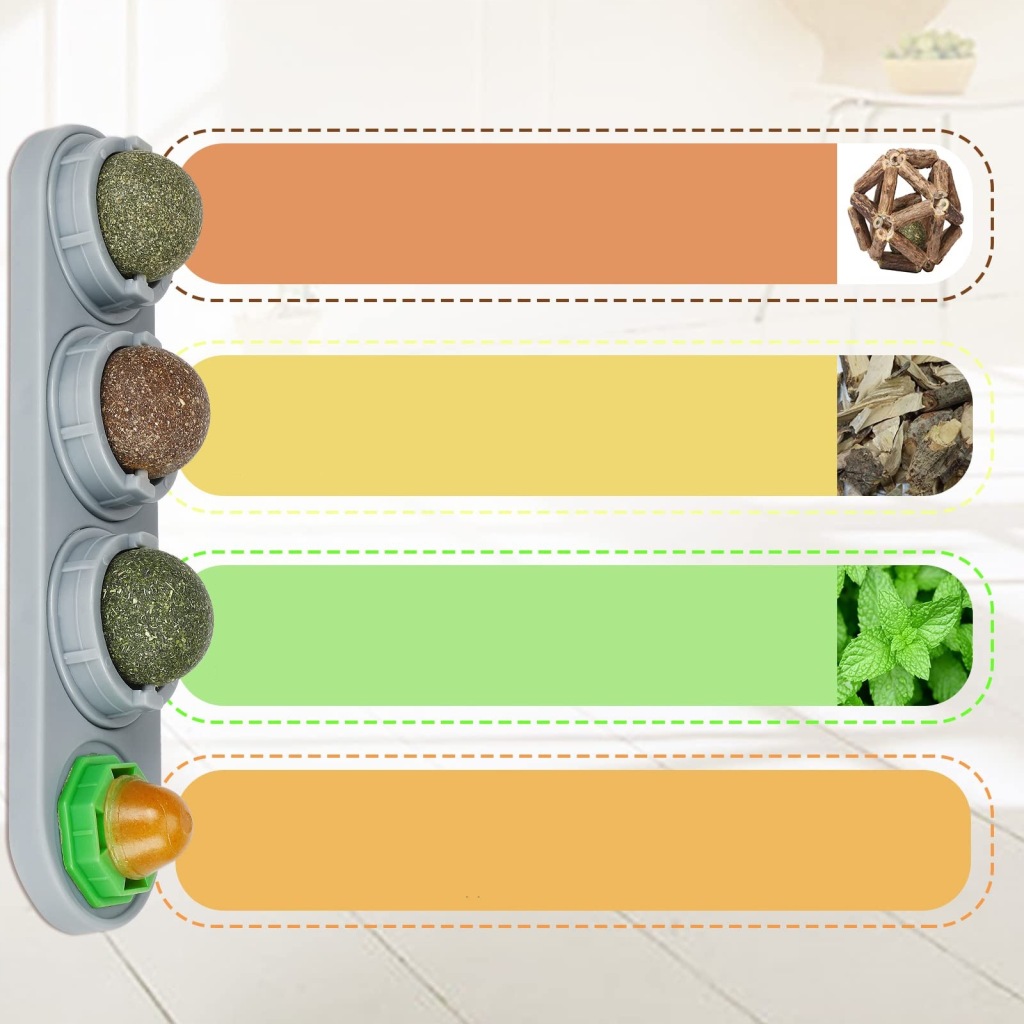 100% naturalne i nietoksyczne: kulki z kocimiętki są wykonane z czystych naturalnych ekstraktów roślinnych, bez żadnych dodatków chemicznych. Możesz mieć pewność, że ta zabawka nie zaszkodzi Twojemu ulubionemu kotkowi. Zawiera 4 różne smaki: „kocimiętka”, „srebrzysta winorośl”, „owoc srebrnej winorośli” i „kocia kula energetyczna”, które spiskują, aby wzbudzić zainteresowanie twojego kota lizaniem i zabawą