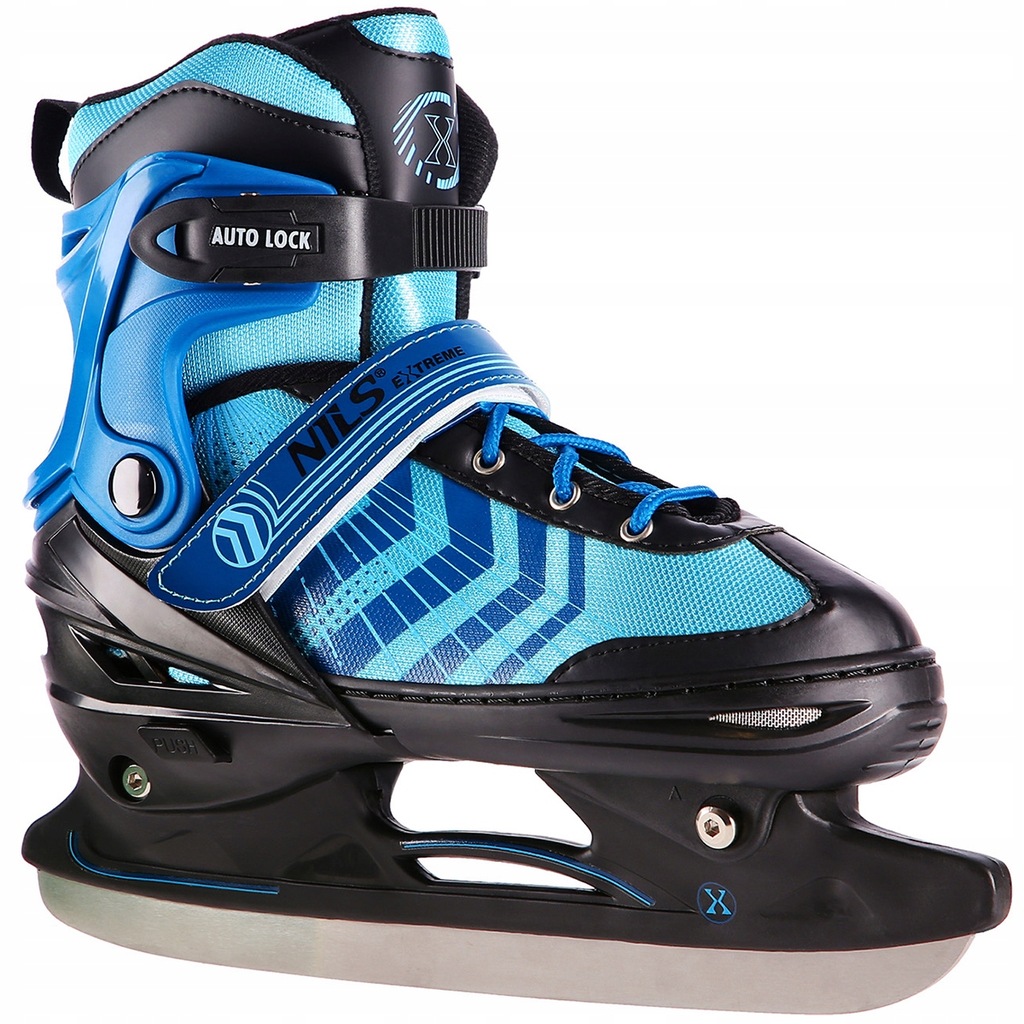 Łyżwy NH18192 Nils Extreme, charakteryzują bardzo dobre właściwości jezdne. Jest to zasługą płóz, wykonanych z wysokogatunkowej stali nierdzewnej oraz wielouchwytowego systemu zapięć, składającego się z paska na rzep, klamry i sznurowadeł, pewnie trzymającego stopy. Wszystko to sprawia, że model ten sprawdza się dobrze w każdych warunkach, dostarczając niepowtarzalnych wrażeń z jazdy.