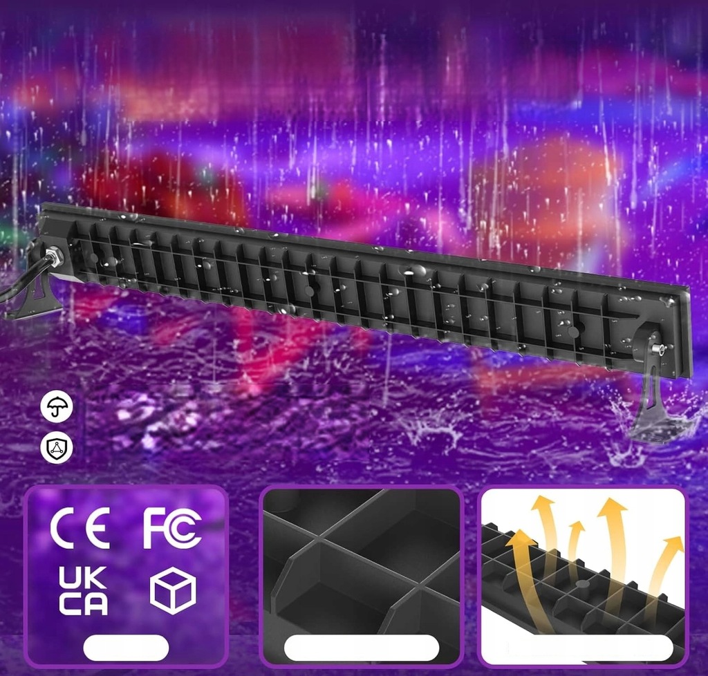 4x 50W LED Lampa UV 385nm IP66 LISTWA OŚWIETLENIE SCENICZNE