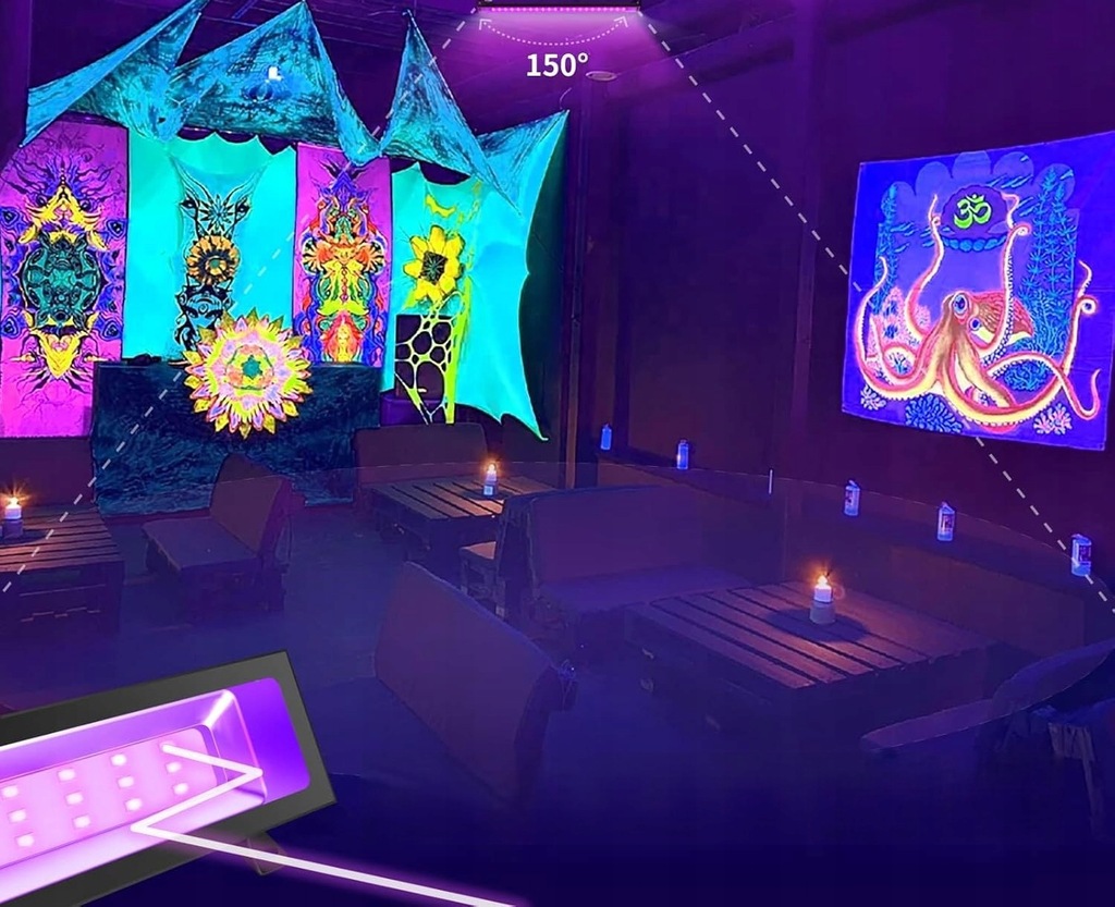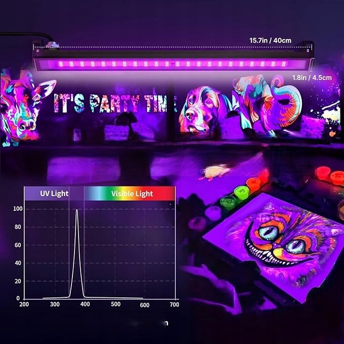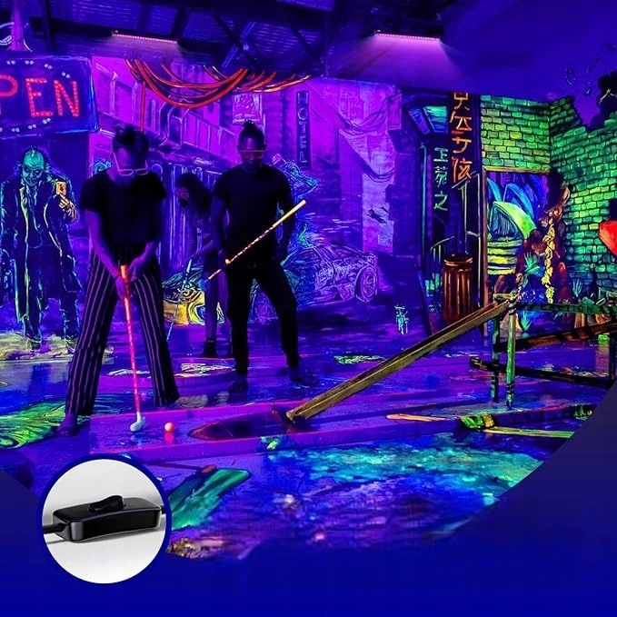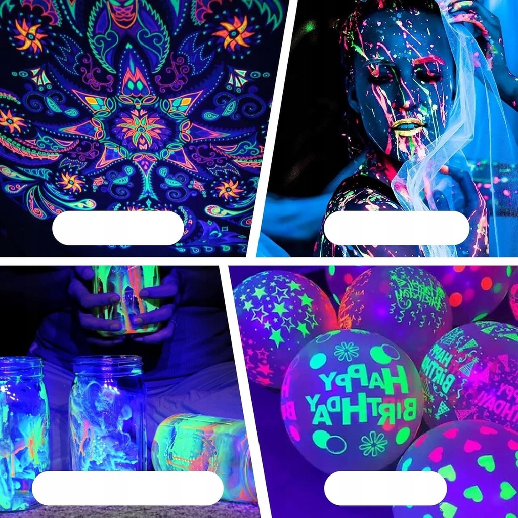 Niekończąca się zabawa: Ten czarny pasek świetlny może wytworzyć doskonały efekt świecenia na materiałach fluorescencyjnych. Jest to idealny wybór do świecących dekoracji imprezowych, plakatów neonowych, gobelinów, malunków na ciele i ekspozycji ze szkła uranowego, tworząc wyjątkową atmosferę na urodziny, Halloween i Boże Narodzenie.