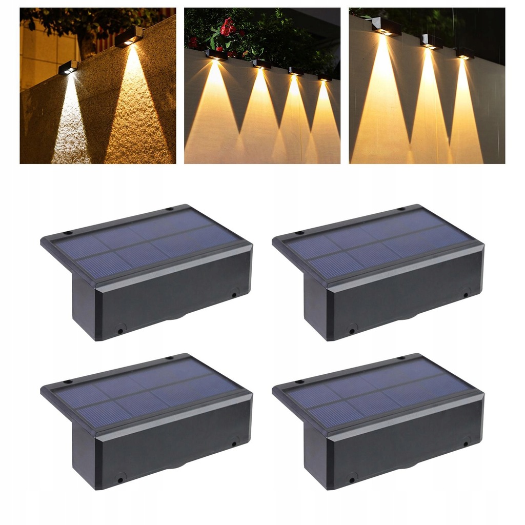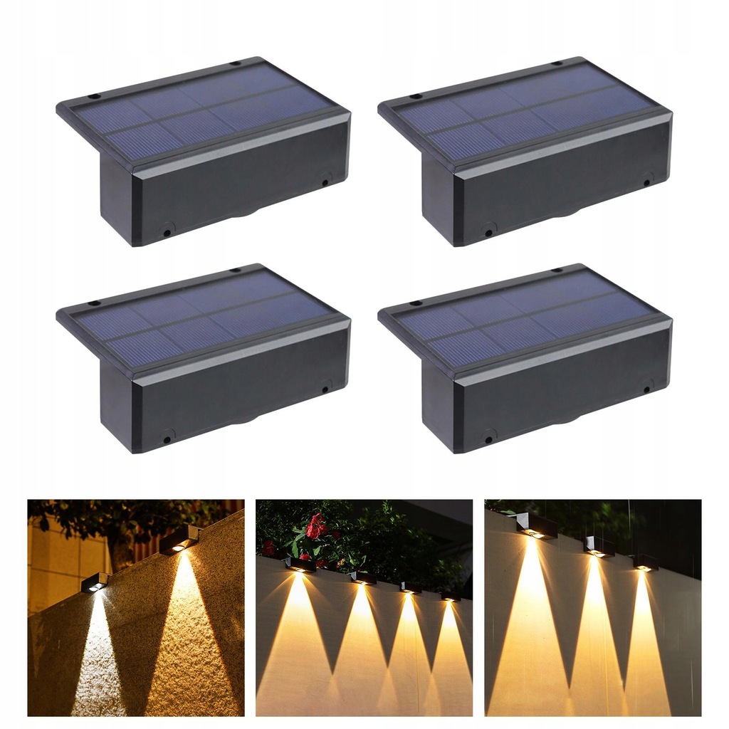 4 szt. Zewnętrzne światła ogrodzeniowe na energię słoneczną Zewnętrzna oprawa oświetleniowa do schodów Ciepłe światło