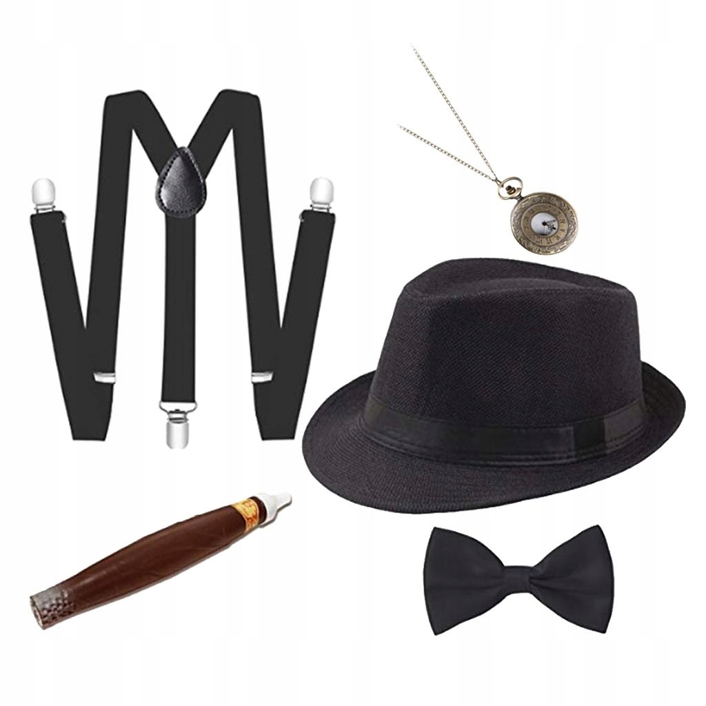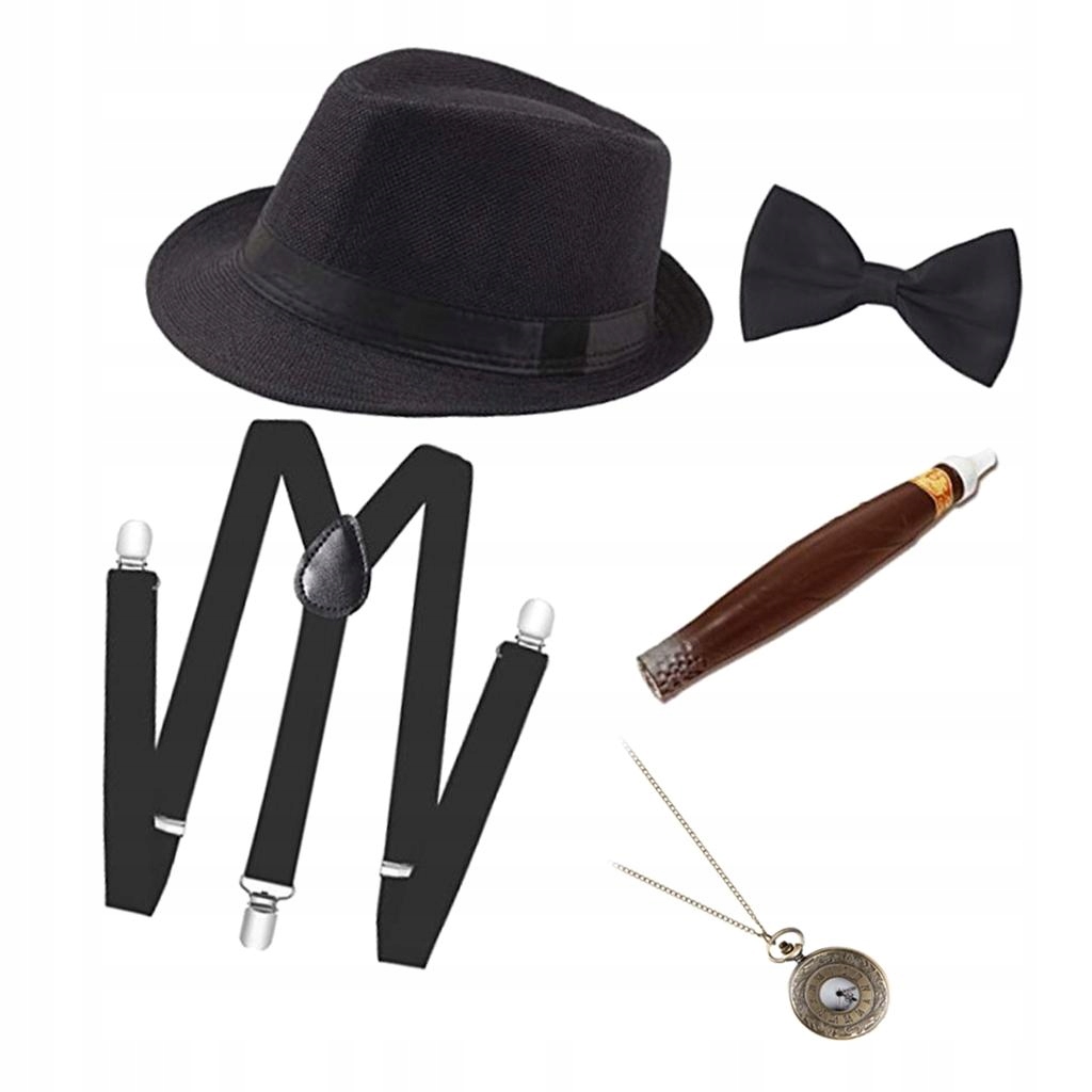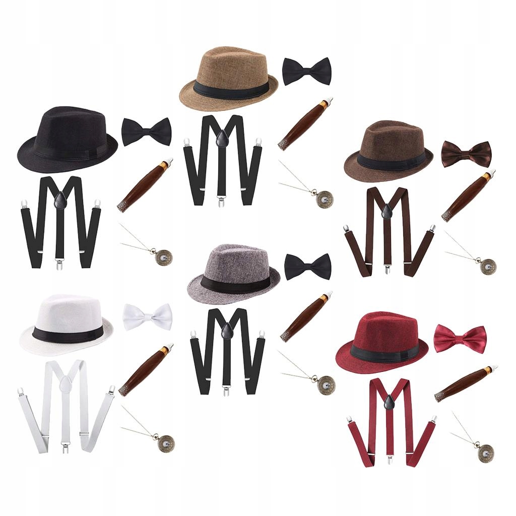 Zestaw zawiera: 1 kapelusz typu fedora, 1 zegarek kieszonkowy, 1 , 1 muszka, 1 pasek do pończoch