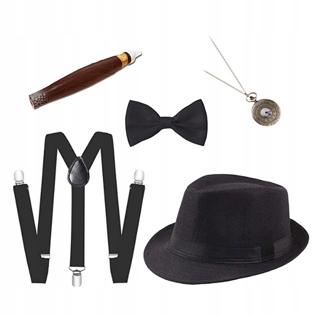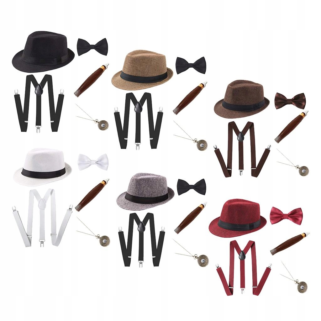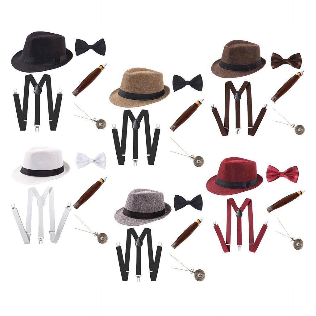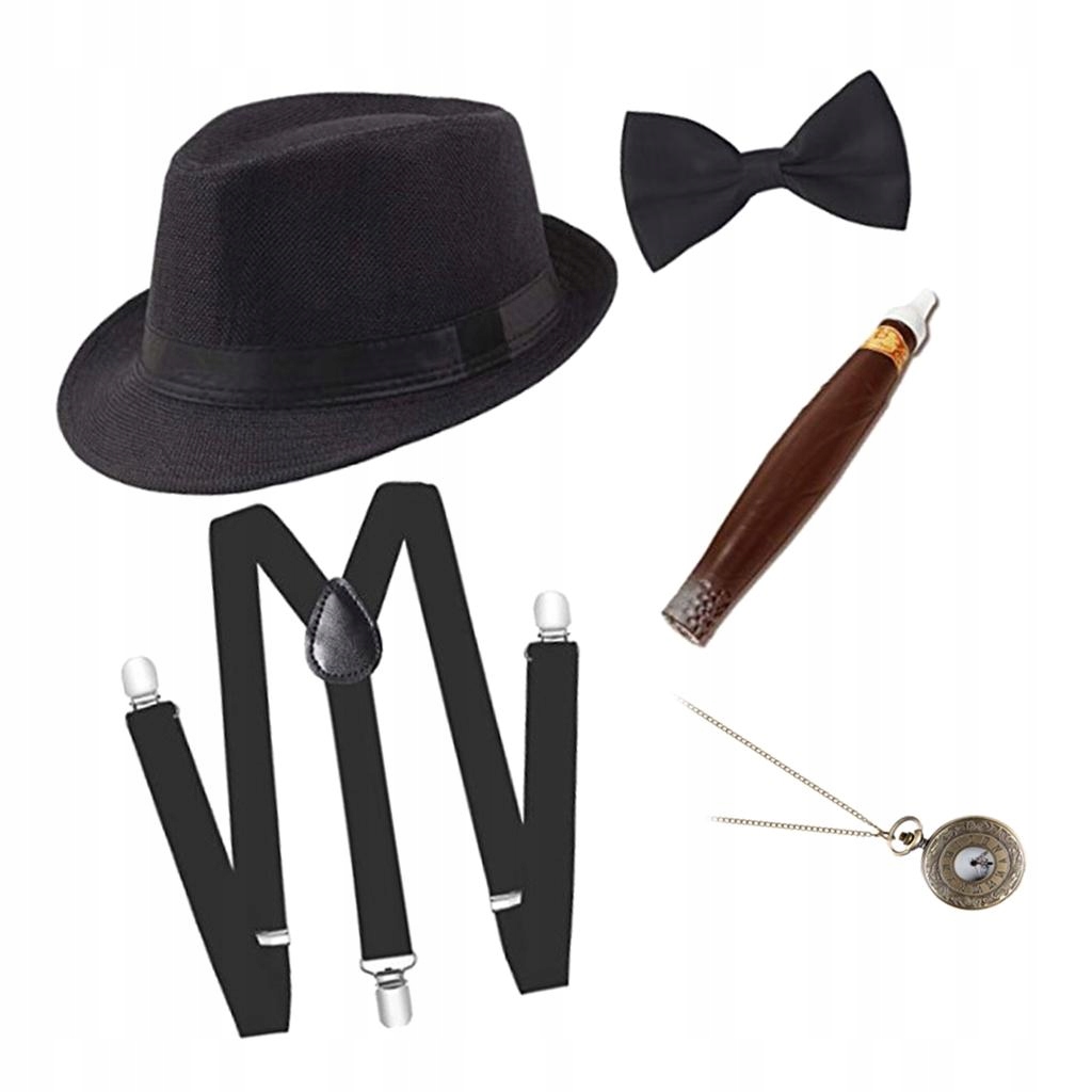 Zestaw zawiera: 1 kapelusz typu fedora, 1 zegarek kieszonkowy, 1 , 1 muszka, 1 pasek do pończoch
