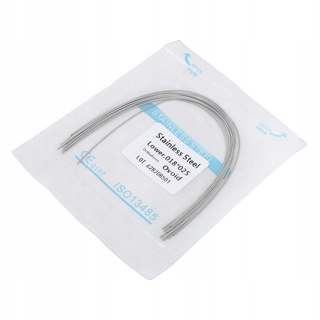 5. MATERIAŁ ZE STALI NIERDZEWNEJ: Drut łuku dentystycznego składa się ze stali nierdzewnej, która jest zarówno bezpieczna, jak i sprężysta, oferując właściwości antykorozyjne oraz niezwykłą stabilność, elastyczność i odporność na zużycie.