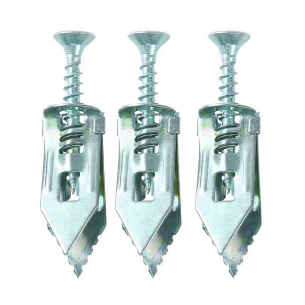 Konstrukcja rozszerzająca-podział w żebrowanych kotwach rozszerza się po dwóch przeciwnych stronach podczas dokręcania śruby, zwiększając siłę trzymania. Ząbkowane po obu stronach, aby zwiększyć metalowe kotwy wiszące do 66 funtów.