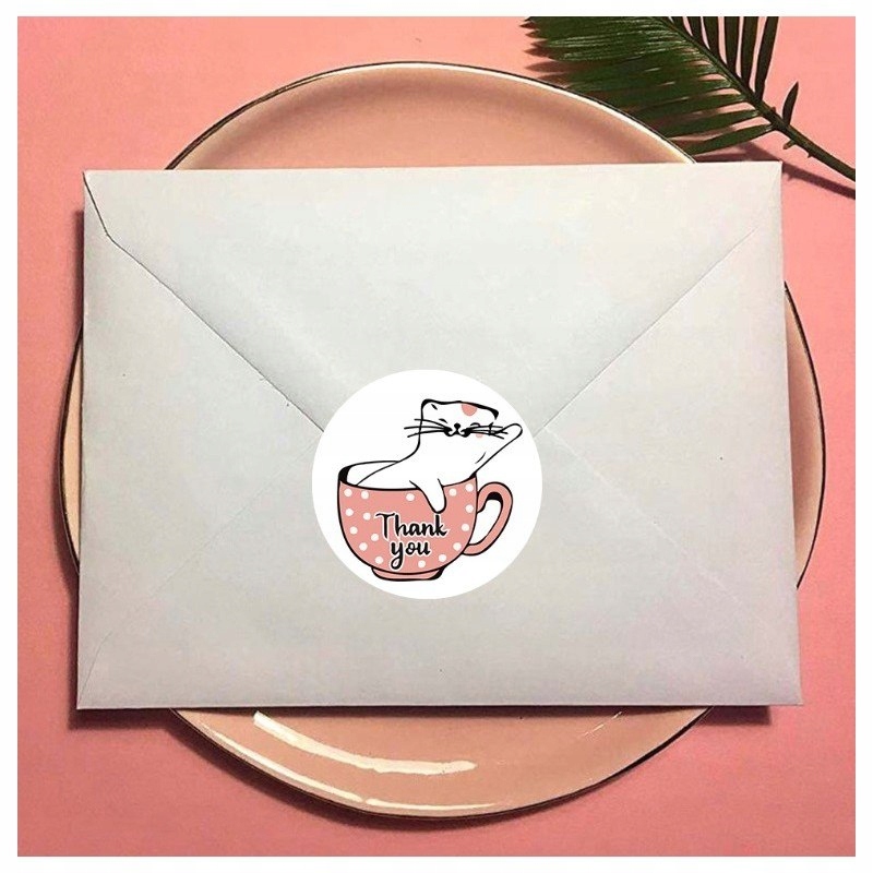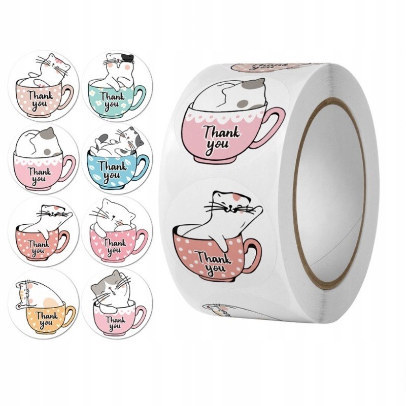 500 sztuk naklejek THANK YOU z kotem na taśmie średnica 25mm dekoracyjne na