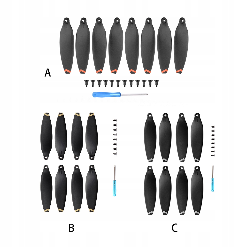 8 sztuk śmigieł (z 12-częściowymi śrubami, 1-częściowym śrubokrętem).