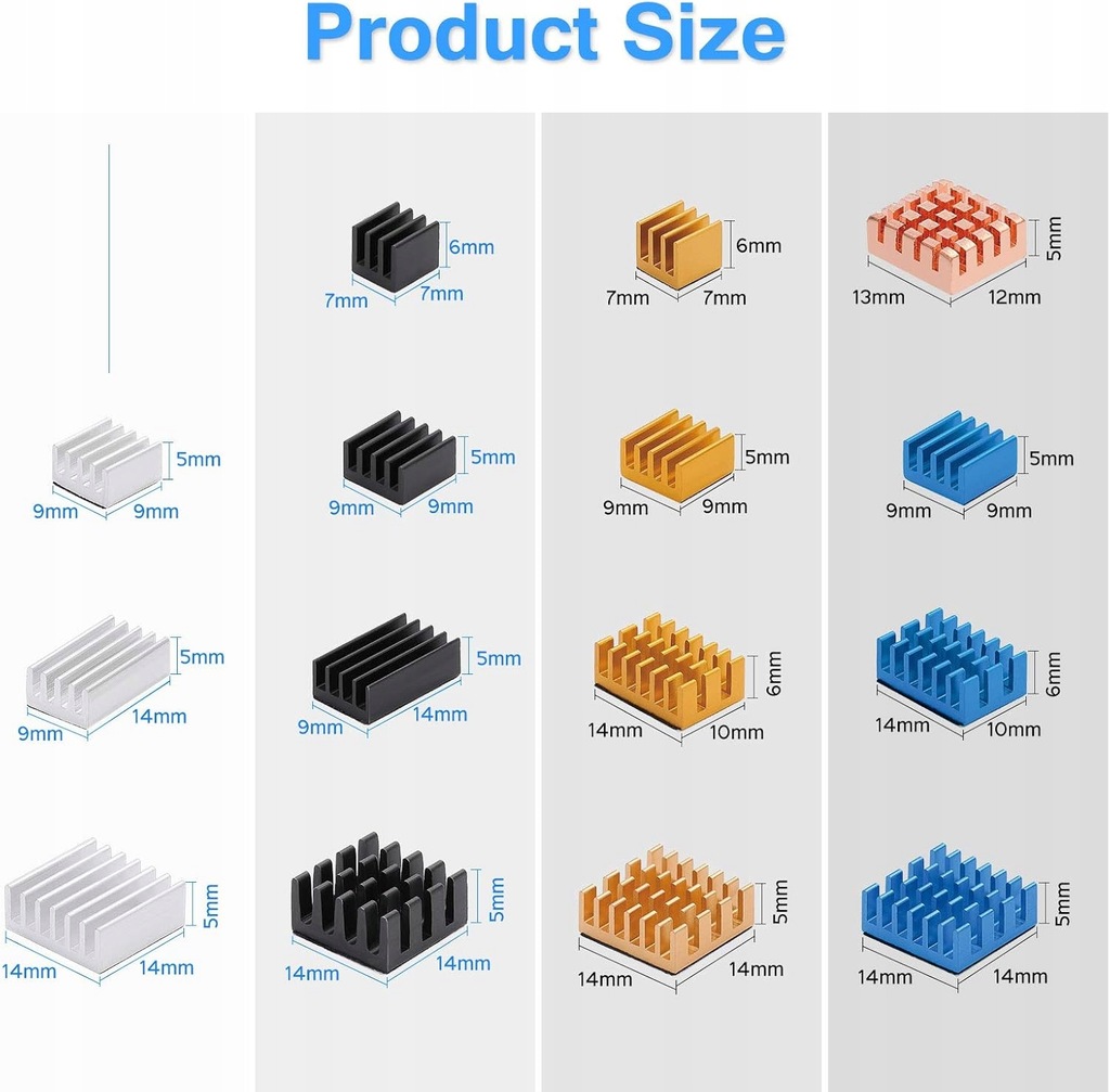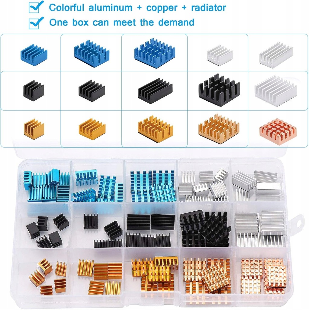 Odkryj nasz zestaw 64 aluminiowych radiatorów, idealny do Raspberry Pi 4b oraz wielu innych zastosowań! Dzięki innowacyjnej przewodzącej ciepło taśmie samoprzylepnej, nasze radiatory zapewniają doskonały transfer ciepła, co przyczynia się do lepszego chłodzenia twojego sprzętu.