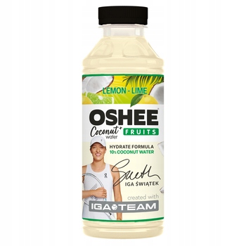 OSHEE Vitamin Water z wodą kokosową o smaku limonka-cytryna to wyjątkowy produkt stworzony przez OSHEE we ścisłej współpracy z Igą Świątek oraz jej sztabem szkoleniowym. Oprócz naturalnych właściwości nawadniających, za które odpowiada dodatek wody kokosowej, produkt zawiera witaminy i minerały (witamina C, witamina B6, niacyna, biotyna). Bez konserwantów, barwników i sztucznych aromatów.