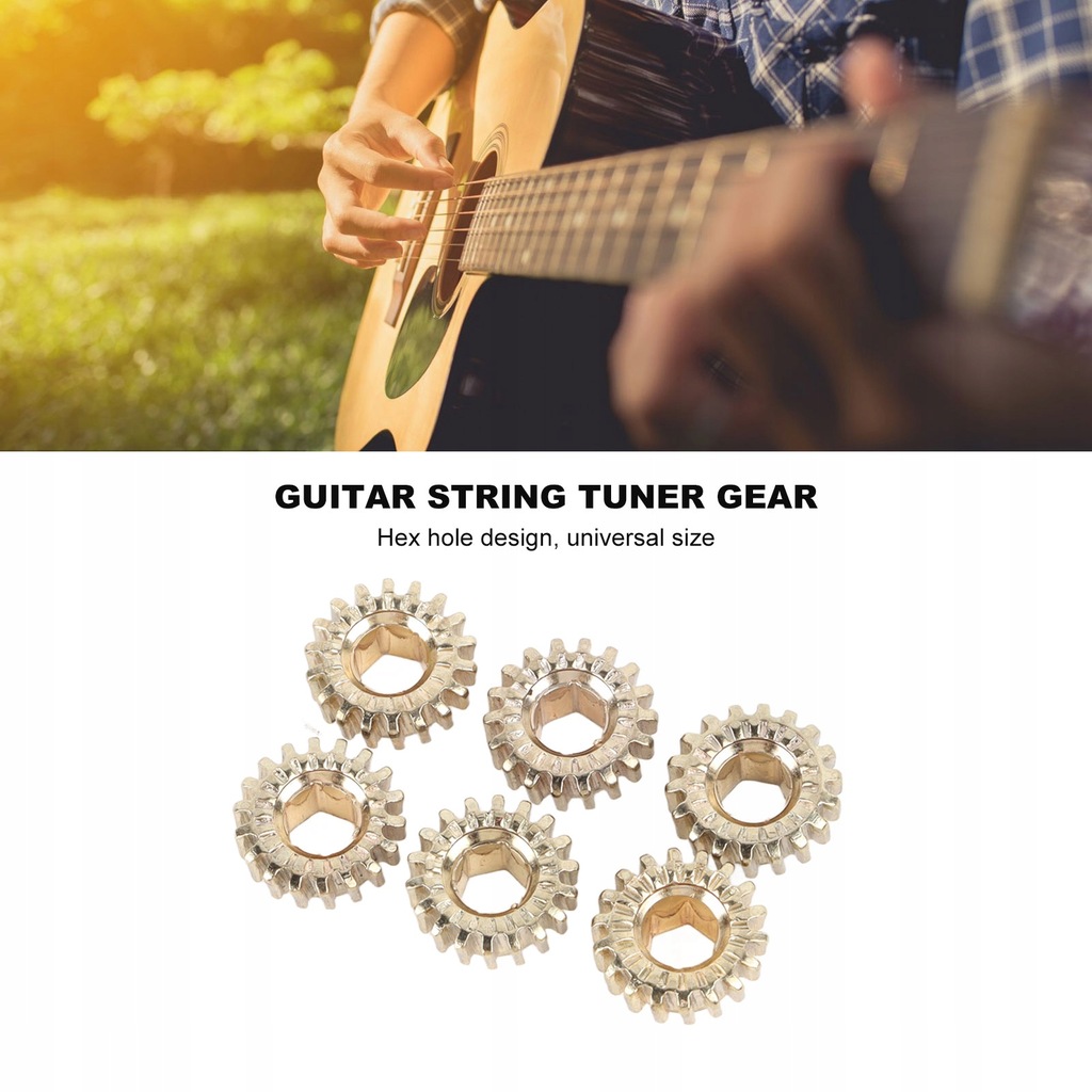 5. ODPOWIEDNI ZAKRES: Zawiera 6 szt. przekładni gitarowych z sześciokątnymi otworami, o uniwersalnym rozmiarze, pasujących do większości modeli gitar akustycznych, gitar klasycznych i gitar elektrycznych.