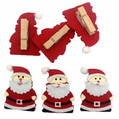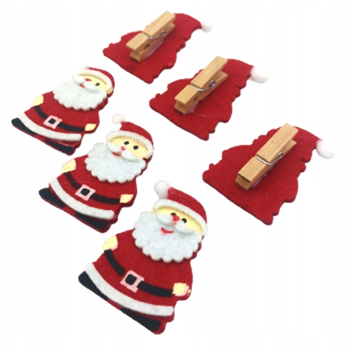 Zestaw 6 spinaczy drewniano-filcowych Mikołaj
