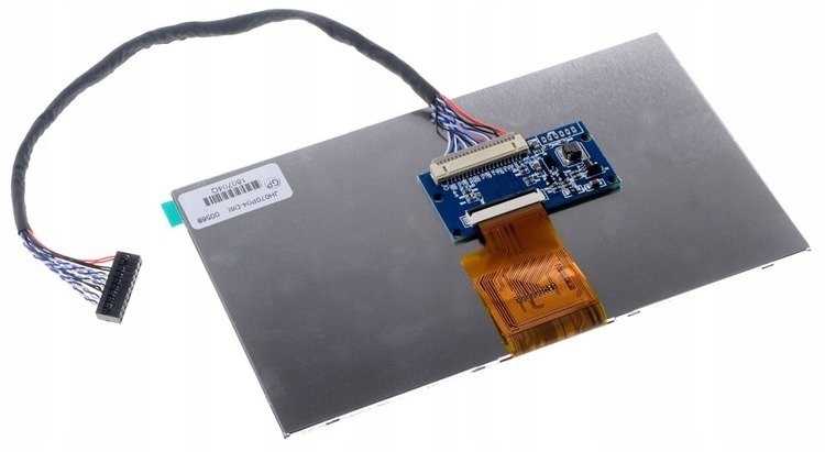 Wyświetlacz graficzny TFT LCD z wbudowanym sterownikiem. Przekątna wyświetlacza 7", rozdzielczość 1024x600px. Podłączany do Raspberry Pi za pomocą interfejsu HDMI.