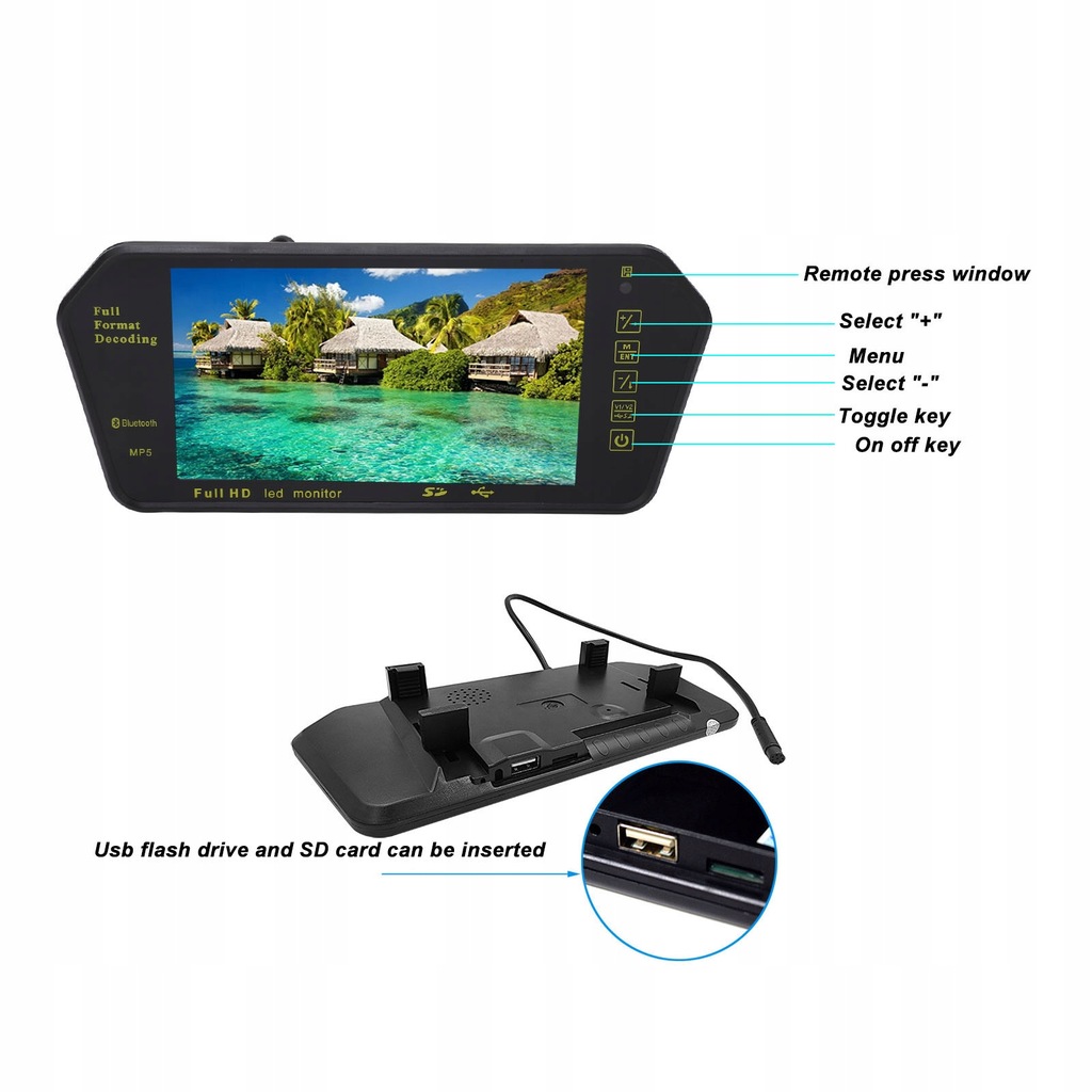 7-calowy wyświetlacz w lusterku wstecznym Multimedialna kamera samochodowa o wysokiej rozdzielczości Kamera cofania w lusterku wstecznym z pilotem