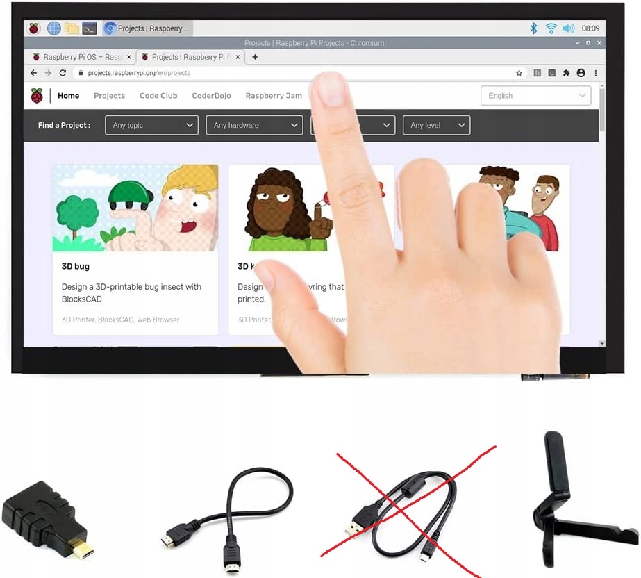 - EKRAN WYŚWIETLACZ DOTYKOWY 7'' HDMI Raspberry Pi