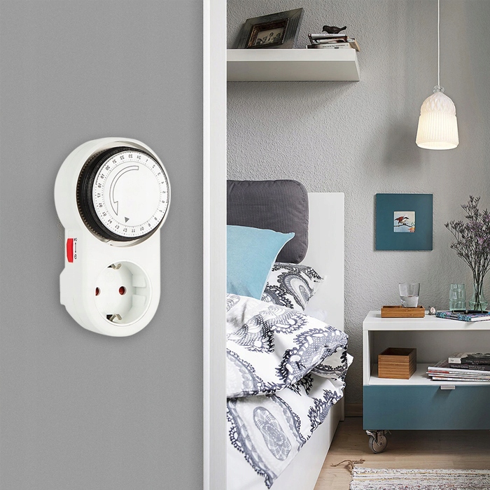 Działanie urządzenia jest bardzo proste - wystarczy podłączyć programator do gniazdka elektrycznego, a następnie wtyk wybranego przez nas urządzenia do gniazdka czasomierza. Posługując się tarczami oraz włącznikiem należy nastawić wymagany przez nas czas działania, a o całą resztę zadba już sam programator.
