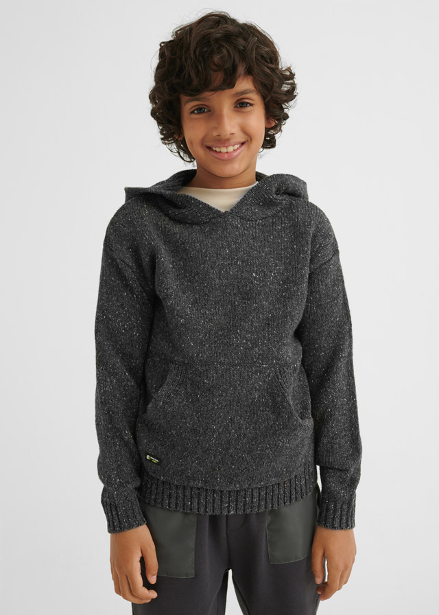 Sweter z długim rękawem dla chłopca. Model z kapturem. Funkcjonalne kieszenie na przodzie.