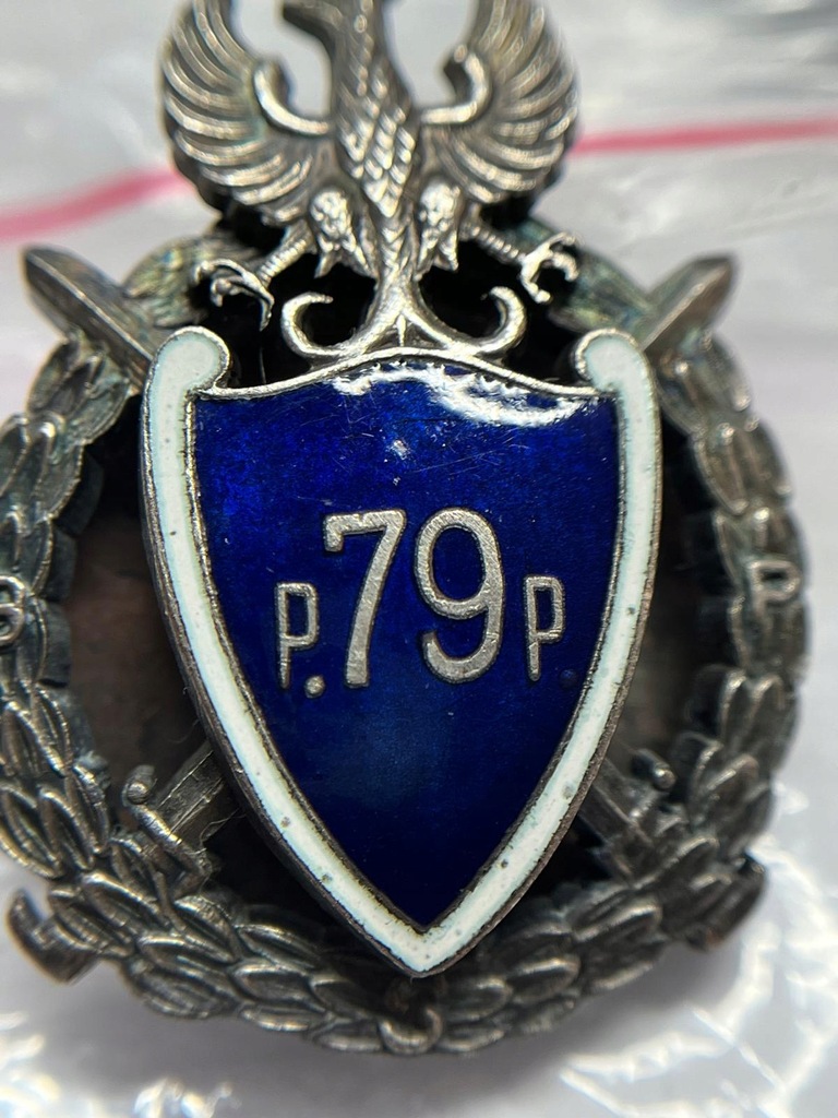 Odznaka emaliowana, nitowana 79 pułku piechoty strzelców słonimskich. Nakrętka Gontarczyk, stan bdb. Duża rzadkość.