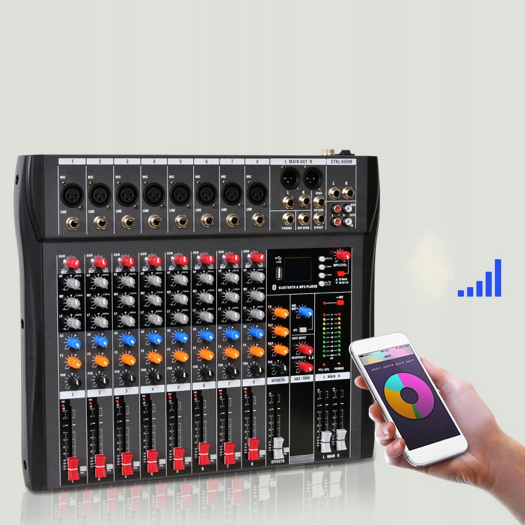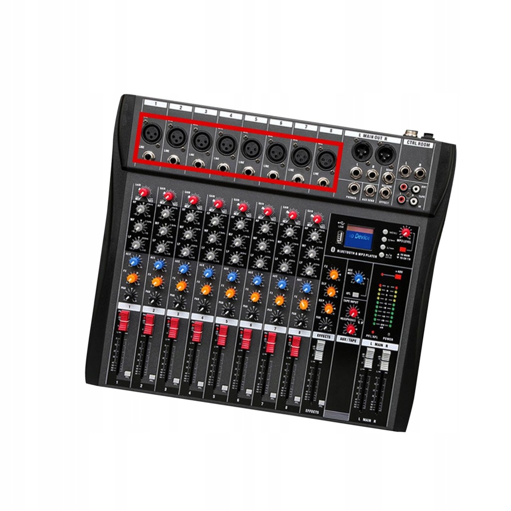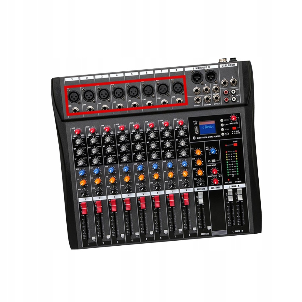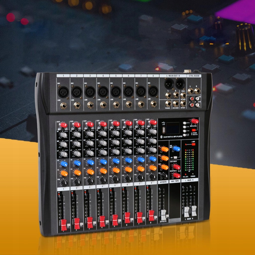 [8 Channel Channel Input]: Mini sound mixer, 3 band equalization, 8 channel mono microphone/line channel input, 1 set of stereo input, with a microphone balanced input jack, it is a high quality microphone amplifier.