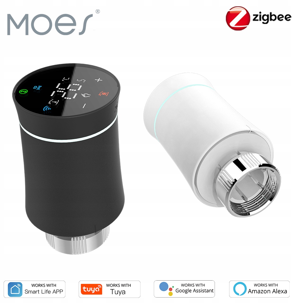 Moes BRT-100 ZigBee TRV termostat Tuya zawór siłownika grzejnika inteligentny programowalny regulator temperatury Alexa GoogleHome sterowanie głosem Biały 4 białe 4 czarne