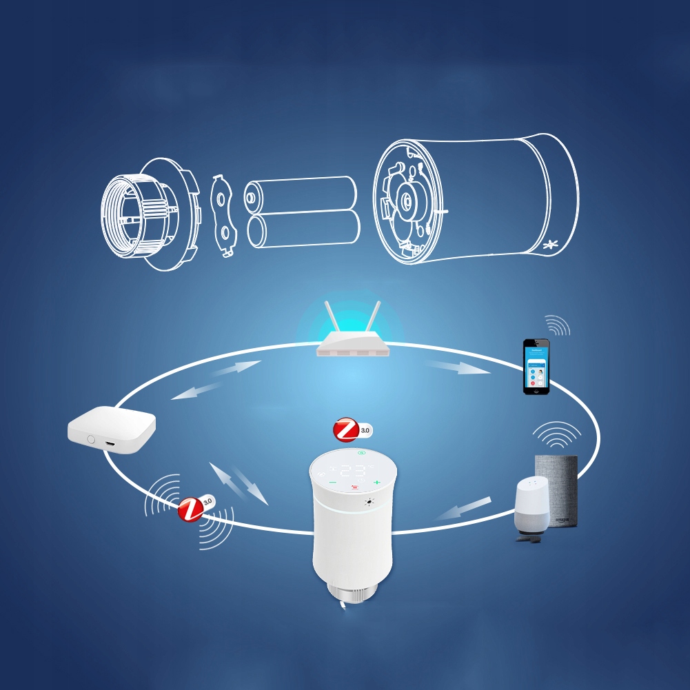 5【Głos i pilot zdalnego sterowania】Obsługuje zdalne sterowanie aplikacją przez telefon. Sterowanie głosowe za pośrednictwem Alexa i Google Assistant po podłączeniu zaworu do aplikacji na podstawie bezprzewodowej bramy ZigBee; APP dodaje nowe okno, aby wyświetlić wykres krzywej temperatury i monitorować temperaturę w pomieszczeniu w czasie rzeczywistym;