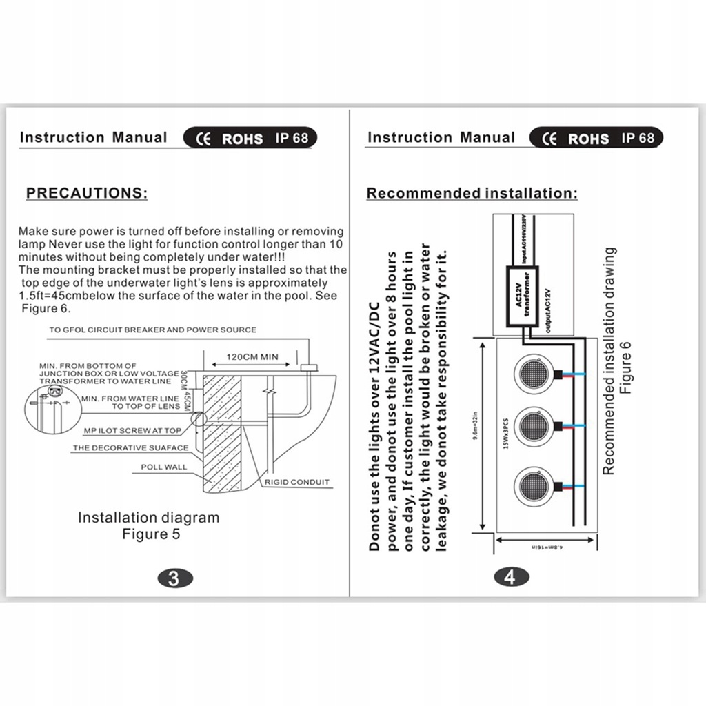 4. Łatwy w instalacji, wyposażony w standardowe akcesoria i instrukcje lampy basenowej, proste dziaanie i wygodne wymiany.