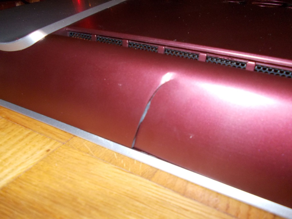 Mankamentem jest uszkodzona obudowa zewnętrzna w 2 miejscach, przy lewej stopce, podstawce monitora oraz w górnej części, co widać na załączonych zdjęciach.