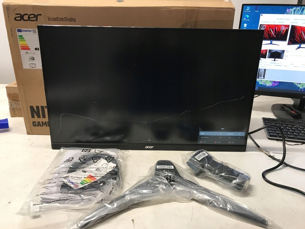 Popraw swoje wrażenia z gry dzięki płynnej, realistycznej grafice i realistycznym kolorom przy częstotliwości odświeżania do 165 Hz¹'². Odkrywaj nowe światy dzięki AMD FreeSync Premium²'3. To jest przegląd możliwych funkcji serii; wybrane urządzenie może się różnić. Ciesz się płynną grą pozbawioną opóźnień dzięki szybkiej, podkręconej częstotliwości odświeżania 165 Hz¹⋅². Nawet gdy akcja staje się burzliwa, czas reakcji 0,5 ms¹ zapewnia wyraźny, pozbawiony rozmyć obraz. Dzięki AMD FreeSync Premium²'3 unikasz niestabilnej rozgrywki i nie rozprasza Cię już rozrywanie obrazu. Ciesz się płynnym i responsywnym wyświetlaczem dzięki synchronizacji liczby klatek na sekundę pomiędzy monitorem i komputerem. Zmień sposób, w jaki widzisz swoje gry, dzięki obsłudze HDR 10². HDR poprawia ogólną jakość i kontrast, aby przenieść rozgrywkę na wyższy poziom z lepszą dokładnością kolorów. Chroń swoje oczy przed niepotrzebnym obciążeniem dzięki technologiom Acer BlueLightShield i Flickerless. Dzięki technologii Acer ComfyView i niskiemu przyciemnieniu odblaski monitora i zmęczenie oczu są zmniejszone podczas długich sesji grania. Dobre monitory powinny powodować niewielkie lub żadne obciążenie. Przechyl, obróć, obróć lub dostosuj wysokość wyświetlacza, aby odciążyć głowę i szyję. Konstrukcja ZeroFrame oferuje również dużo miejsca na ekranie. ¹Rzeczywista liczba klatek na sekundę może się różnić w zależności od modelu i/lub regionu, specyfikacji komputera/sprzętu i/lub konfiguracji komputera. Aby uzyskać najwyższe wymienione częstotliwości odświeżania, wymagane są najnowsze standardy okablowania i odpowiednie połączenie urządzenia. ²Dokładne funkcje techniczne i dostępność mogą się różnić w zależności od modelu i/lub regionu. AMD FreeSync Premium wymaga kompensacji niskiej liczby klatek na sekundę i częstotliwości odświeżania co najmniej 120 Hz w rozdzielczości FHD. Dalsze informacje i szczegóły można znaleźć na stronie internetowej AMD.
