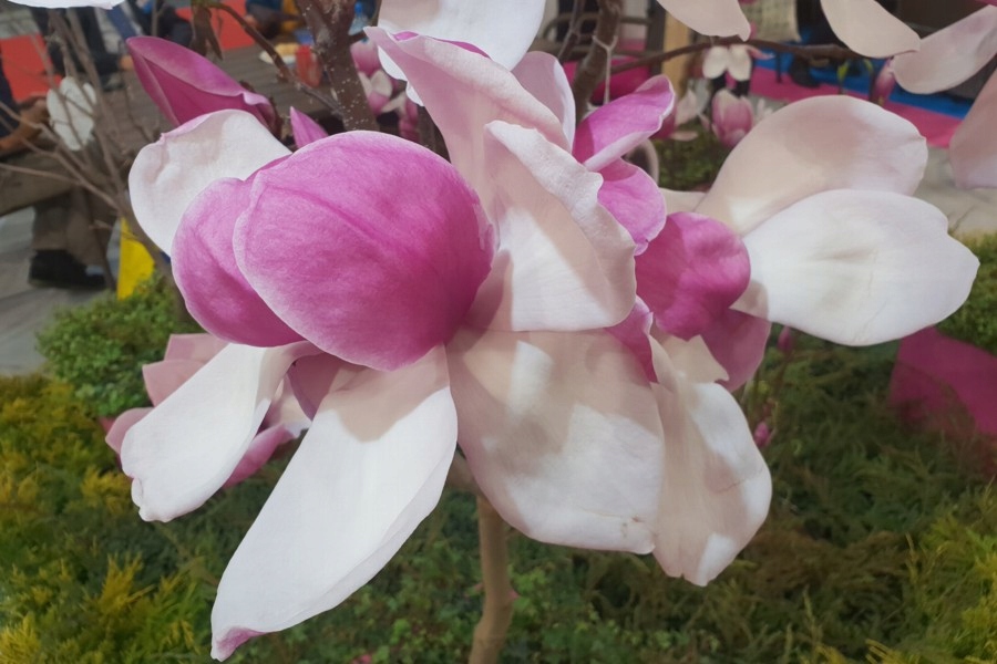 Przepiękna magnolia o niespotykanych, olbrzymich tulipanowatych kwiatach w kolorze różowo- białym.