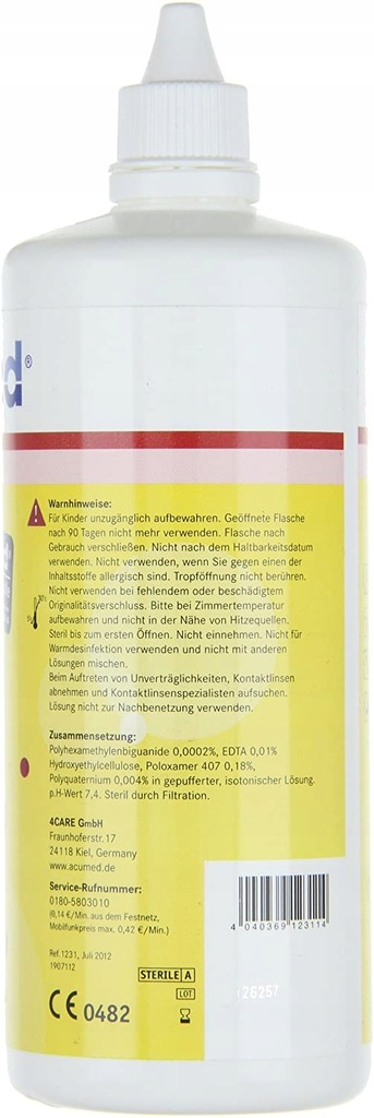 Nadaje się do wszystkich etapów pielęgnacji Przyjęte rozwiązanie kombinacyjne do czyszczenia, dezynfekcji, przechowywania i płukania wszystkich miękkich soczewek kontaktowych. Dokładny, ale łagodny dla twoich oczu. Wartość pH dopasowana do płynu łzowego gwarantuje maksymalną zgodność.