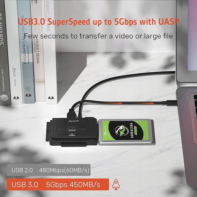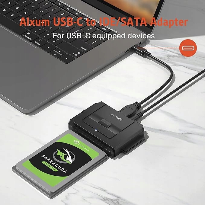 - Adapter IDE SATA jest wyposażony w odwracalny port USB-C, działa lepiej z laptopem i komputerem stacjonarnym wyposażonym w USB-C.