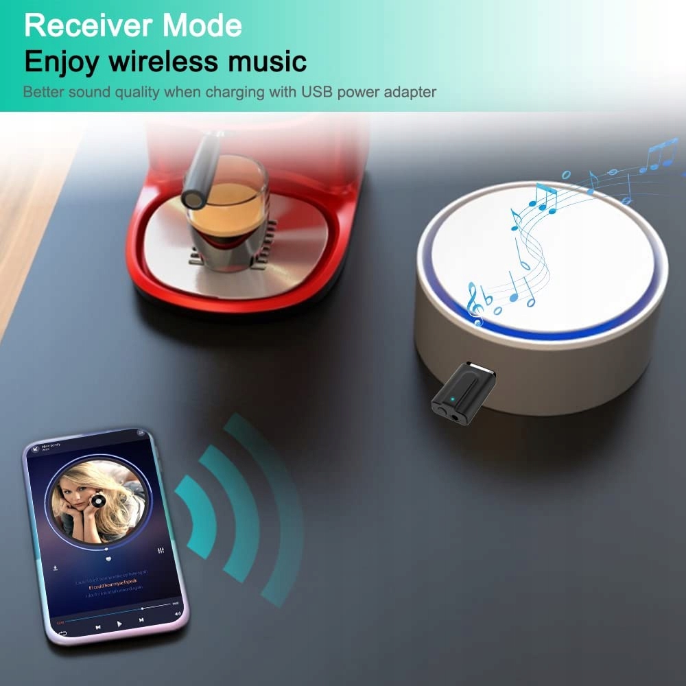 - Pasuje do telewizora: jest używany głównie do oglądania telewizji, która przesyła audio do słuchawek Bluetooth, a następnie tylko można usłyszeć dźwięk telewizora (inni go nie słyszą), dzięki czemu nie przeszkadza innym osobom; pasuje do samochodu: w trybie odbiornika adapter Bluetooth może pomóc w przesyłaniu muzyki z telefonów komórkowych na głośniki samochodowe lub domowe urządzenia stereo bez funkcji Bluetooth. Wbudowany mikrofon umożliwia telefonowanie bez użycia rąk.