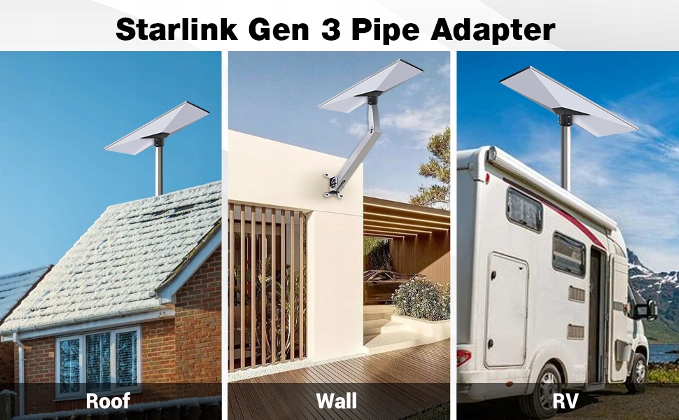Idealne dopasowanie: adaptery rurowe Starlink Gen 3 można z łatwością przymocować do prętów o średnicy od 25 mm (1 cal) do 53 mm (2,1 cala), co zapewnia stabilny i niezawodny odbiór sygnału.