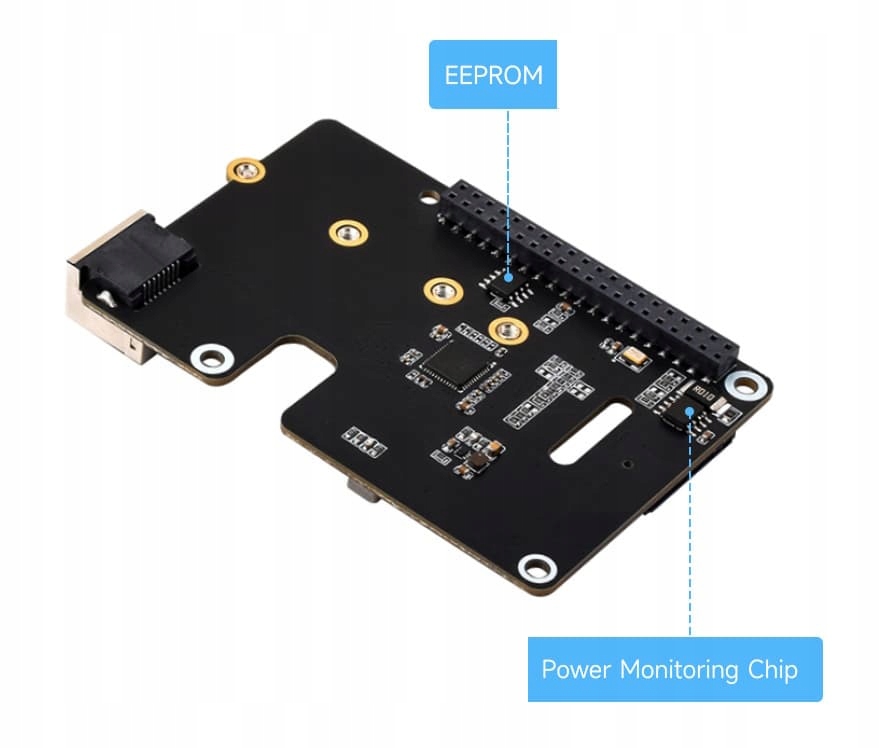 - Kompatybilność ze standardem HAT+ (wbudowany EEPROM)