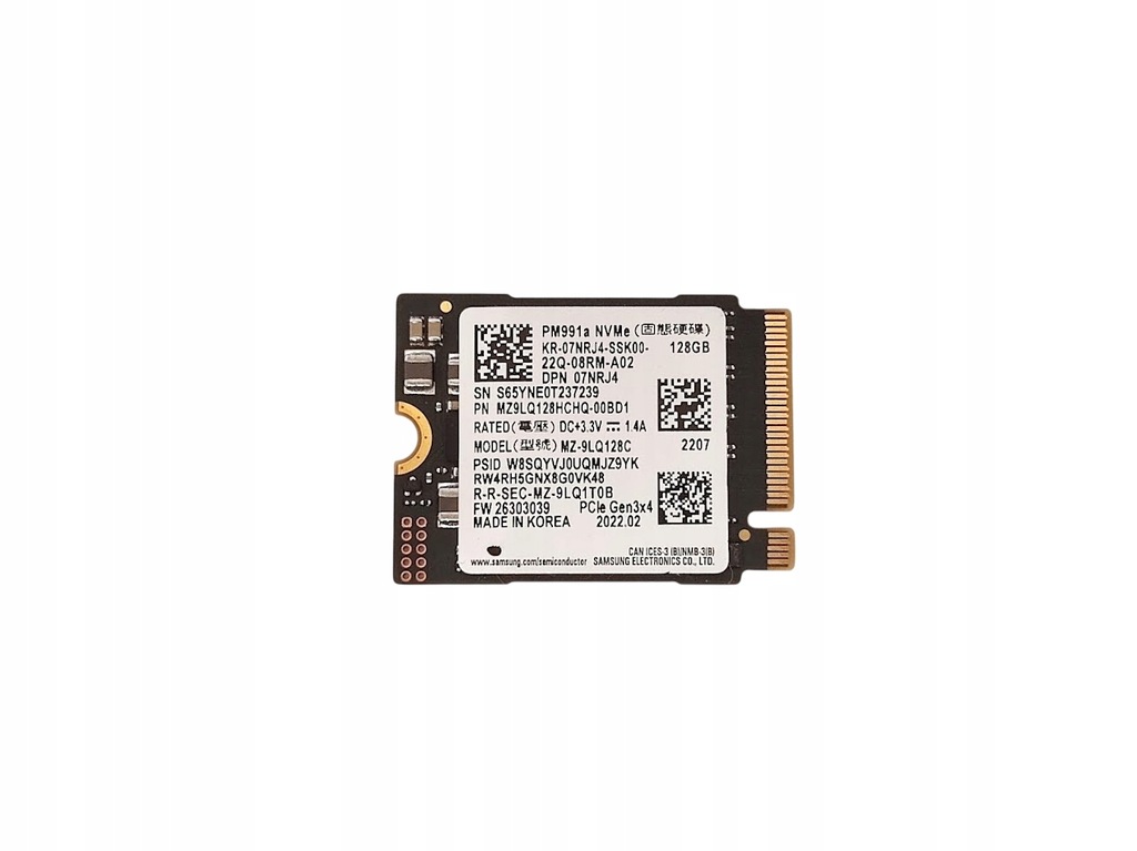 - Dysk SSD Samsung PM991a o pojemności 128 GB (używany). Dysk ten oferuje doskonałą wydajność dzięki interfejsowi PCIe NVMe, zapewniając prędkość odczytu do 2000 MB/s oraz zapisu do 1000 MB/s. Jest to kompaktowe i energooszczędne rozwiązanie idealne do zastosowań w Raspberry Pi 5.